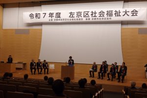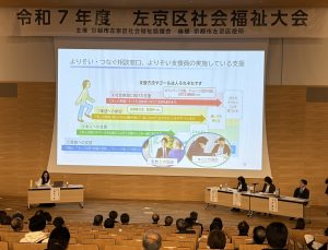 11月21日(金)、京都府立京都学・歴彩館大ホールにおいて、左京区社会福祉大会及び地域福祉シンポジウムを開催しました。当日は、区社協会長表彰として、多年にわたり地域福祉・ボランティア活動の発展に貢献された53名の方に表彰状・感謝状を贈呈させていただきました。その後に開催した地域福祉シンポジウムでは、世代ごとが抱える「孤独・孤立」をテーマに、人と人、人と地域がつながることの意義について、左京区内で実施されている取組を共有しながら、参加された方との意見交換を行うことができました。左京区社協では、「こころのひとりぼっちをなくそう」をスローガンに、支援が必要な方を含めて誰一人取り残されることのない社会を目指し、今後も地域の福祉活動を支援していきます。