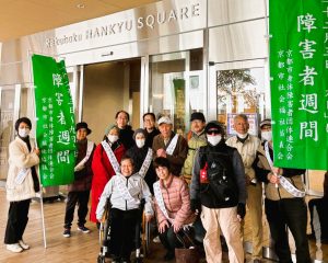 令和7年12月6日(土)10時から、左京区身体障害者団体連合会、京都市手話学習会「みみずく」左京支部、左京区役所、左京区社会福祉協議会で、洛北阪急スクエアで障害者週間街頭啓発をしました。